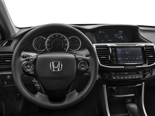 Crystal Black Pearl 2017 Honda Accord EX-L V6 3.5L V6 SOHC i-VTEC 24V 6-Speed Automatic FWD Blk Trimmed Seats Leather, 17 Alloy Wheels, 4-Wheel Disc Brakes, 7 Speakers, ABS brakes, Air Conditioning, Alloy wheels, AM/FM radio: SiriusXM, Apple CarPlay/Android Auto, Auto-dimming Rear-View mirror, Automatic temperature control, Brake assist, Bumpers: body-color, CD player, Compass, Delay-off headlights, Driver door bin, Driver vanity mirror, Dual front impact airbags, Dual front side impact airbags, Electronic Stability Control, Emergency communication system: HondaLink, Exterior Parking Camera Rear, Four wheel independent suspension, Front anti-roll bar, Front Bucket Seats, Front Center Armrest, Front dual zone A/C, Front fog lights, Front reading lights, Fully automatic headlights, Garage door transmitter: HomeLink, Heated door mirrors, Heated Front Bucket Seats, Heated front seats, Illuminated entry, Leather-Trimmed Seats, Low tire pressure warning, Memory seat, Occupant sensing airbag, Outside temperature display, Overhead airbag, Overhead console, Panic alarm, Passenger door bin, Passenger vanity mirror, Power door mirrors, Power driver seat, Power moonroof, Power passenger seat, Power steering, Power windows, Radio data system, Radio: 360-Watt AM/FM/HD Premium Audio System, Rear anti-roll bar, Rear seat center armrest, Rear window defroster, Remote keyless entry, Security system, Speed control, Speed-sensing steering, Speed-Sensitive Wipers, Split folding rear seat, Steering wheel mounted audio controls, Tachometer, Telescoping steering wheel, Tilt steering wheel, Traction control, Trip computer, Turn signal indicator mirrors, and Variably intermittent wipers.21/33 City/Highway MPGAwards:* 2017 IIHS Top Safety Pick+ (When equipped with Honda Sensing and specific headlights) * 2017 KBB.com 10 Most Awarded Brands * 2017 KBB.com Brand Image AwardsKelley Blue Book Brand Image Awards are based on the Brand Watch(tm) study from Kelley Blue Book Market Intelligence. Award calculated among non-luxury shoppers. For more information, visit www.kbb.com. Kelley Blue Book is a registered trademark of Kelley Blue Book Co., Inc.