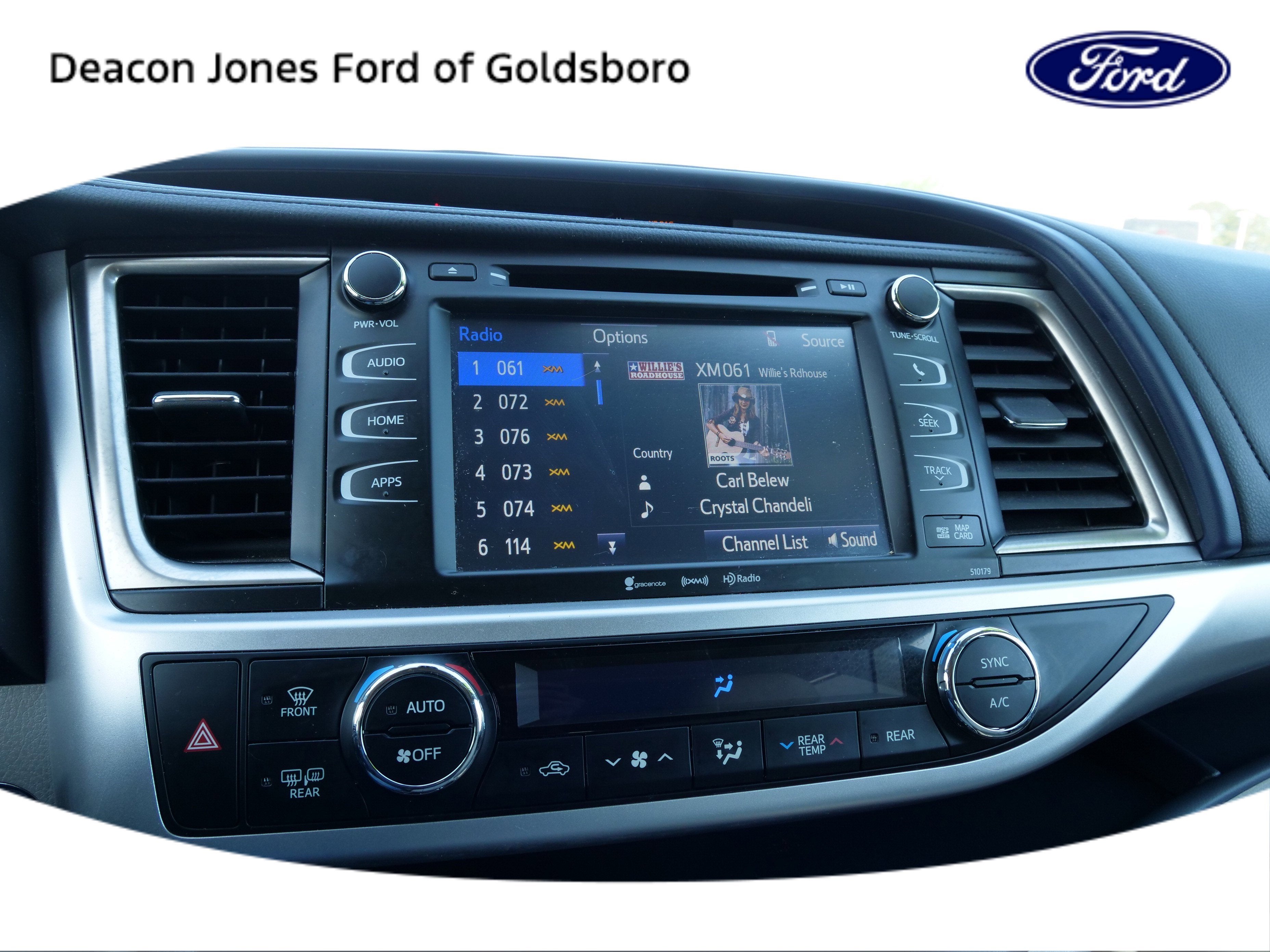 - Radio: Entune Premium Audio w/Nav & App Suite -inc: the Entune Multimedia Bundle (8" high resolution touch-screen w/split screen display, AM/FM CD player, MP3/WMA playback capability, 6 speakers, auxiliary audio jack, USB 2.0 port w/iPod connectivity and control, advanced voice recognition, hands-free phone capability, phone book access and music streaming via Bluetooth wireless technology), Siri Eyes Free, Entune App Suite, Intelligent Touch controls, SiriusXM Satellite Radio w/3-month complimentary SirusXM All Access trial, HD Radio, HD Radio predictive traffic and Doppler weather overlay, AM/FM cache radio, Gracenotes album cover art and integrated back up camera display w/projected path