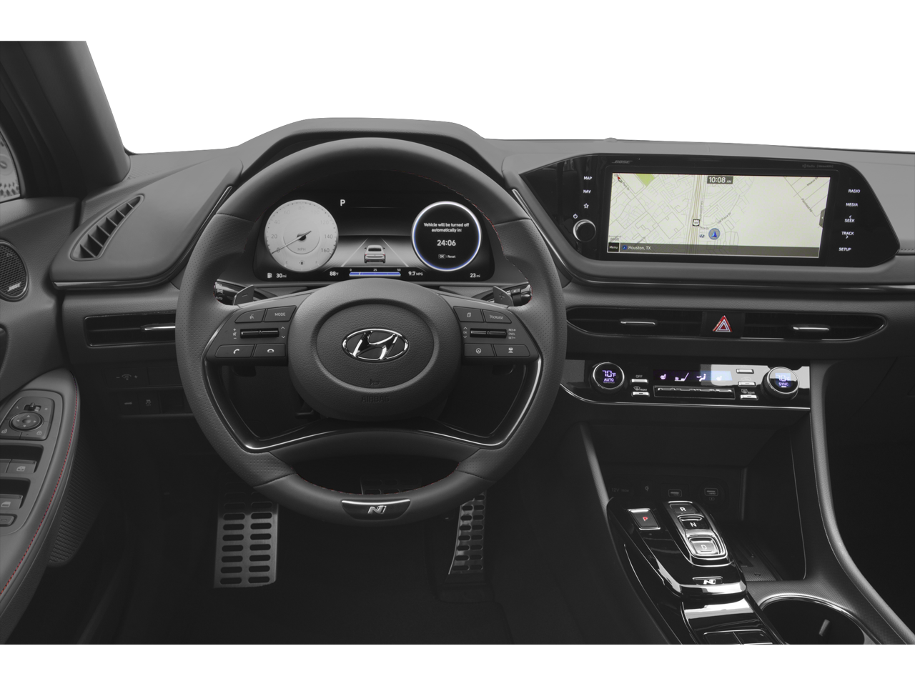 Recent Arrival! Hampton Gray 2023 Hyundai Sonata N Line Option Group 01, Black Leather, 12 Speakers, 4-Wheel Disc Brakes, ABS brakes, Air Conditioning, Alloy wheels, AM/FM radio: SiriusXM, Apple CarPlay & Android Auto, Auto High-beam Headlights, Auto-dimming Rear-View mirror, Automatic temperature control, Brake assist, Bumpers: body-color, Carpeted Floor Mats, Delay-off headlights, Driver door bin, Driver vanity mirror, Dual front impact airbags, Dual front side impact airbags, Electronic Stability Control, Emergency communication system: Blue Link Connected Car Service (3-year complimentary subscription), Exterior Parking Camera Rear, Four wheel independent suspension, Front anti-roll bar, Front Bucket Seats, Front Center Armrest, Front dual zone A/C, Front reading lights, Fully automatic headlights, Garage door transmitter: HomeLink, Heated door mirrors, Heated front seats, Heated N Unique Sport Seats, Illuminated entry, Knee airbag, Leather Seating Surfaces, Leather steering wheel, Low tire pressure warning, Mud Guards, Navigation System, Occupant sensing airbag, Outside temperature display, Overhead airbag, Overhead console, Panic alarm, Passenger door bin, Passenger vanity mirror, Power door mirrors, Power driver seat, Power moonroof, Power steering, Power windows, Radio data system, Radio: AM/FM/MP3/HD/SiriusXM Display Audio w/Nav, Rear anti-roll bar, Rear Bumper Applique, Rear seat center armrest, Rear side impact airbag, Rear window defroster, Remote keyless entry, Security system, Speed control, Speed-sensing steering, Speed-Sensitive Wipers, Split folding rear seat, Spoiler, Steering wheel mounted audio controls, Tachometer, Telescoping steering wheel, Tilt steering wheel, Traction control, Trip computer, Trunk Cargo Net, Turn signal indicator mirrors, Variably intermittent wipers, and Wheels: N Unique 19 x 8.0J Aluminum Alloy.23/33 City/Highway MPG