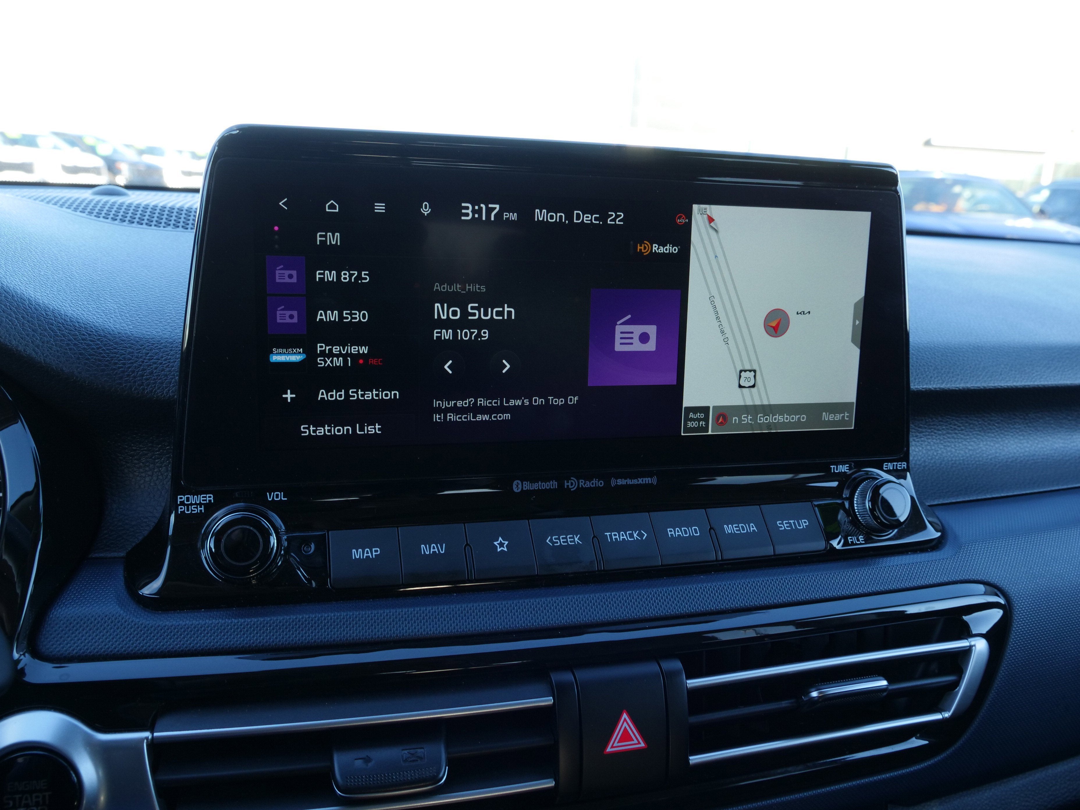 - Radio: AM/FM/MP3 Display Audio -inc: 8" touch screen, UVO telematics, Android Auto, Apple CarPlay, 6 speakers, voice recognition and USB connectivity