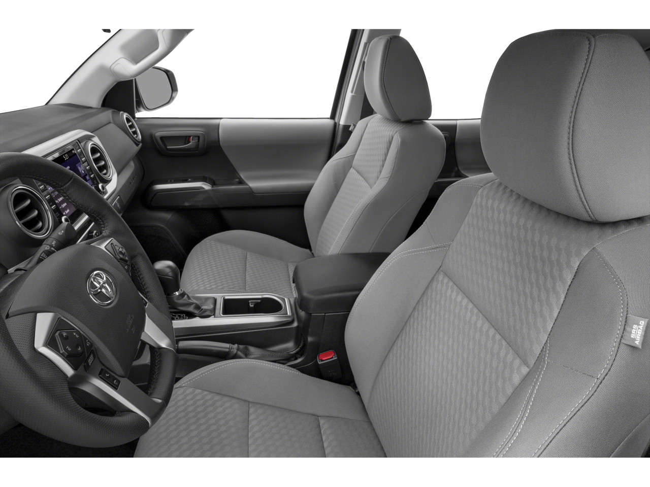 Recent Arrival! Silver 2023 Toyota Tacoma V6 120V/400W Deck Mounted AC Power, 6 Speakers, ABS brakes, Air Conditioning, Alloy wheels, AM/FM radio: SiriusXM, Anti-whiplash front head restraints, Apple CarPlay/Android Auto, Auto High-beam Headlights, Auto-dimming Rear-View mirror, Automatic temperature control, Axle Ratio: 3.91, Brake assist, Bumpers: body-color, Driver door bin, Dual front impact airbags, Dual front side impact airbags, Electronic Stability Control, Emergency communication system: Safety Connect (1-year trial), Engine Immobilizer, Exterior Parking Camera Rear, Fabric Seat Trim, Front anti-roll bar, Front Bucket Seats, Front Center Armrest, Front dual zone A/C, Front fog lights, Front reading lights, Front Seats, Front wheel independent suspension, Heated door mirrors, Illuminated entry, Knee airbag, Leather Seat Trim, Leather Shift Knob, Low tire pressure warning, Occupant sensing airbag, Outside temperature display, Overhead airbag, Overhead console, Panic alarm, Passenger door bin, Power door mirrors, Power driver seat, Power steering, Power windows, Radio: Audio, Rear step bumper, Remote keyless entry, Security system, Speed control, Speed-sensing steering, Split folding rear seat, Steering wheel mounted audio controls, Tachometer, Telescoping steering wheel, Tilt steering wheel, Traction control, Trip computer, Turn signal indicator mirrors, and Variably intermittent wipers.