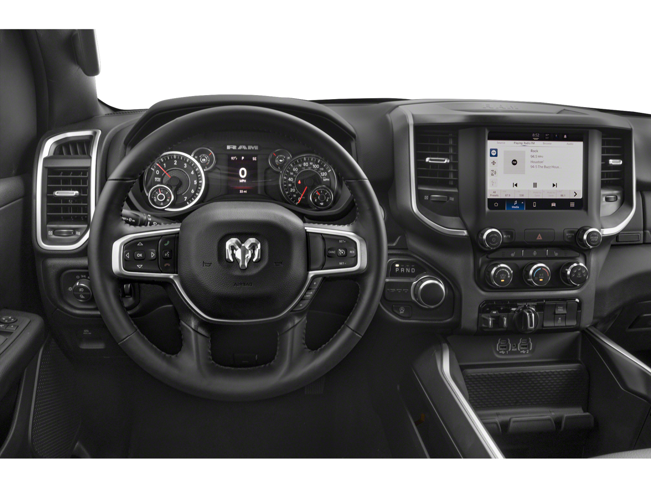 Diamond Black Crystal Pearlcoat 2024 Ram 1500 Laramie 4WD 8-Speed Automatic HEMI 5.7L V8 Multi Displacement VVT eTorque Quick Order Package 27H Laramie, 10 Speakers, 3 Rear Seat Head Restraints, 3.21 Rear Axle Ratio, 4 Way Front Headrests, 4-Wheel Disc Brakes, 48V Belt Starter Generator, 4G LTE Wi-Fi Hot Spot, ABS brakes, Air Conditioning, Alloy wheels, AM/FM radio: SiriusXM with 360L, Apple CarPlay, Apple CarPlay/Android Auto, Audio memory, Auto-dimming door mirrors, Auto-Dimming Exterior Driver Mirror, Auto-dimming Rear-View mirror, Automatic temperature control, Brake assist, Bumpers: chrome, Chrome Exterior Mirrors, Compass, Connected Travel & Traffic Services, Connectivity - US/Canada, Convex Wide-Angle Exterior Mirror Insert, Delay-off headlights, Driver door bin, Driver Seat Memory, Driver vanity mirror, Dual front impact airbags, Dual front side impact airbags, Electronic Stability Control, Exterior Mirrors Courtesy Lamps, Exterior Mirrors w/Heating Element, Exterior Mirrors w/Memory, Exterior Mirrors w/Supplemental Signals, For Details, Visit DriveUconnect.com, For More Info, Call 800-643-2112, Front anti-roll bar, Front Center Armrest w/Storage, Front dual zone A/C, Front fog lights, Front License Plate Bracket, Front reading lights, Front Seat Back Map Pockets, Front wheel independent suspension, Fully automatic headlights, Garage door transmitter, Global Telematics Box Module (TBM), Google Android Auto, GPS Navigation, HD Radio, Heated door mirrors, Heated Front Seats, Heated front seats, Heated Steering Wheel, Heated steering wheel, Illuminated entry, Integrated Voice Command w/Bluetooth®, Leather steering wheel, Leather Trim 40/20/40 Bench Seat, Low tire pressure warning, Manufacturer's Statement of Origin, Memory seat, Navigation System, Occupant sensing airbag, Outside temperature display, Overhead airbag, Overhead console, Panic alarm, ParkView Rear Back-Up Camera, Passenger door bin, Passenger vanity mirror, Power 2-Way Driver Lumbar Adjust, Power 2-Way Passenger Lumbar Adjust, Power 8-Way Driver & Passenger Seats, Power door mirrors, Power driver seat, Power passenger seat, Power steering, Power windows, Power-Folding Mirrors, Radio data system, Radio: Uconnect 5 Nav w/8.4 Display, RAM Grille Badge - Chrome, Rear 60/40 Folding Seat, Rear anti-roll bar, Rear seat center armrest, Rear step bumper, Remote keyless entry, Security system, SiriusXM Radio Service, SiriusXM w/360L, Speed control, Split folding rear seat, Steering wheel mounted audio controls, Tachometer, Telescoping steering wheel, Tilt steering wheel, Traction control, Trip computer, Turn signal indicator mirrors, USB Host Flip, Variably intermittent wipers, Ventilated Front Seats, Ventilated front seats, Voltmeter, and Wheels: 18 x 8 Aluminum Base PainteD.